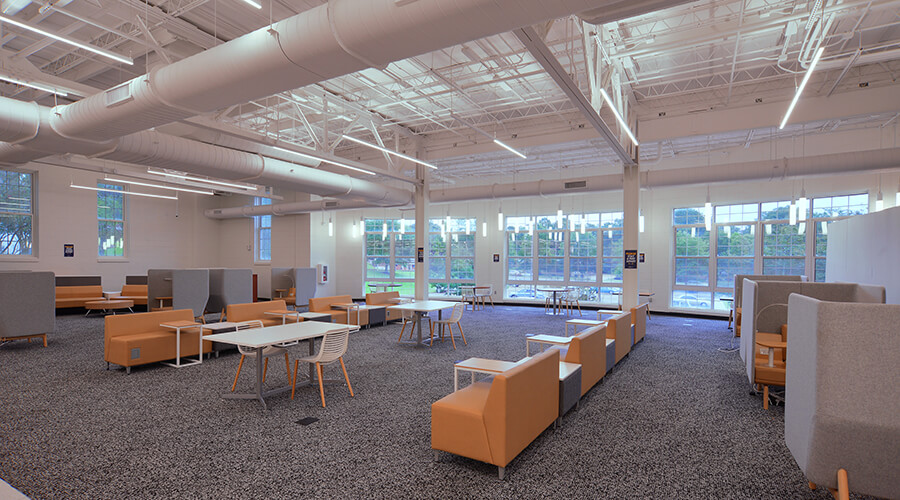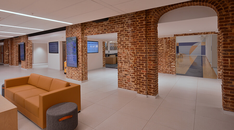 The focus of this project was a complete renovation of the basement and 1st-floor levels of the historical multi-purpose facility at Mississippi College, Alumni Hall. The building was constructed in 1925 and included an indoor pool, basketball court, coffee shop, security office, and conference rooms. The new design has transformed this space to give the students and faculty a gathering space anchored by Chick-Fil-A and Einstein Bros. Bagels. Additional amenities include designated spaces for the admissions offices, common study areas, and the M-Club. Architectural features of the project include exposed brick from the early 20th century and carefully selected ceilings, light fixtures, and finishes. Additionally, a monumental staircase consisting of glass and stainless-steel handrails and maple stair treads was added to connect the 1st floor with the 2nd floor. The collaboration between the owners, design team, consultants, and general contractor made this project a success that will enhance the experience for the students, faculty, and alumni at Mississippi College.