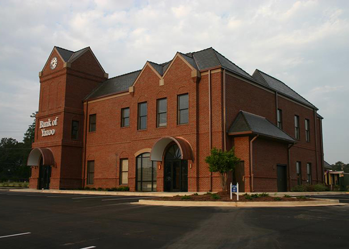 This invited bid project was the first prototype of its kind to be built for Bank of Yazoo. The two-story building features a clock tower, custom copper canopy, detailed masonry, and a composite faux slate roof.