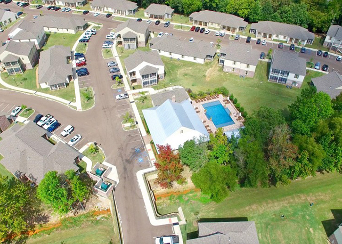 General construction services were provided to build The Cottages at Hooper Hollow which offer an alternative student housing option, off-campus, on South Lamar Boulevard in Oxford, MS. The project consisted of 45 buildings varying in style with single story, duplex and 2-story buildings providing a total of 76 units – a majority of which have 4 bedrooms. Amenities included private screened porches with swing beds; patios; stainless steel kitchen appliances; residential style washer and dryers; granite and stone countertops in the kitchen and bathrooms; travertine surrounds; walk in closets in each bedroom; energy efficient tankless water heaters; interior brick arches; ceiling fans in each bedroom; and Clubhouse with pool and recreational areas.