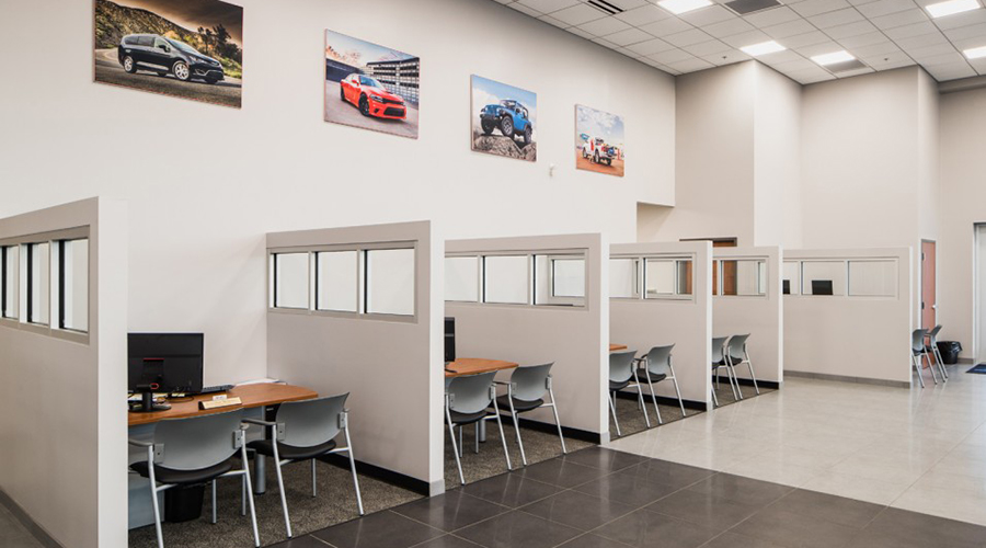 General construction services were provided for a premier automotive dealership client based in Texas to construct two facilities simultaneously in Madison County. Located on 12 acres along the I-55 corridor, the joint site includes beautifully landscaped sales lots with concrete drives, asphalt paving, MDOT approved fencing, and elevated car display platforms. The facility contains 6,000 SF of showroom, sales offices, conference rooms, and customer areas that are second to none, as well as 14,258 SF of Service area, complete with service offices, shop, wash bay, and state of the art automotive mechanical equipment, and a 1,213 SF drive thru canopy. Amminities such as waiting rooms with refreshment bars and televisions, children’s play area, employee breakroom, locker room for service technicians, and elevated sales platforms offer comfortable and functional spaces in an impressive atmosphere created by interior finishes such as granite countertops, ceramic flooring, and aluminum storefront, The brand-specific exterior façade of the Chrysler, Dodge, Jeep, Ram (CDJR) facility is comprised of EIFS, brushed aluminum composite wall panels, stainless steel, glass curtainwall, and metal soffit panels.